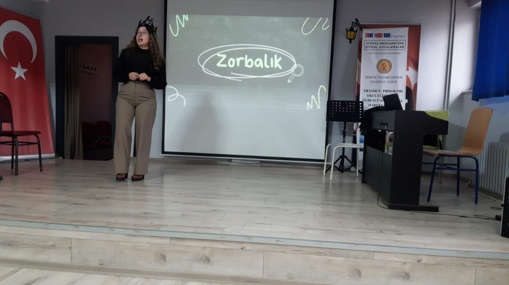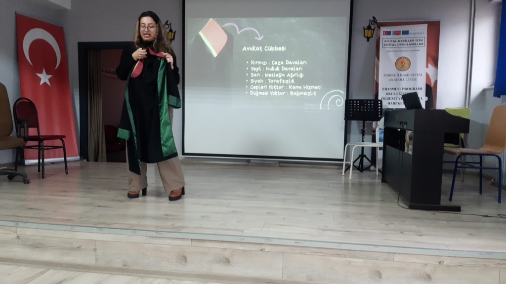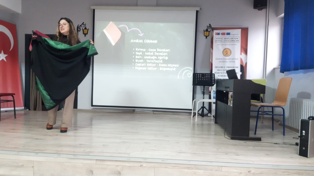 07.10.2025 günü okulumuz konferans salonunda öğrencilerimize yönelik Avukat Özge HAZIR tarafından “ Avukatlık Mesleği ve Akran Zorbalığının Yasal Boyutları” konulu sunum yapıldı.